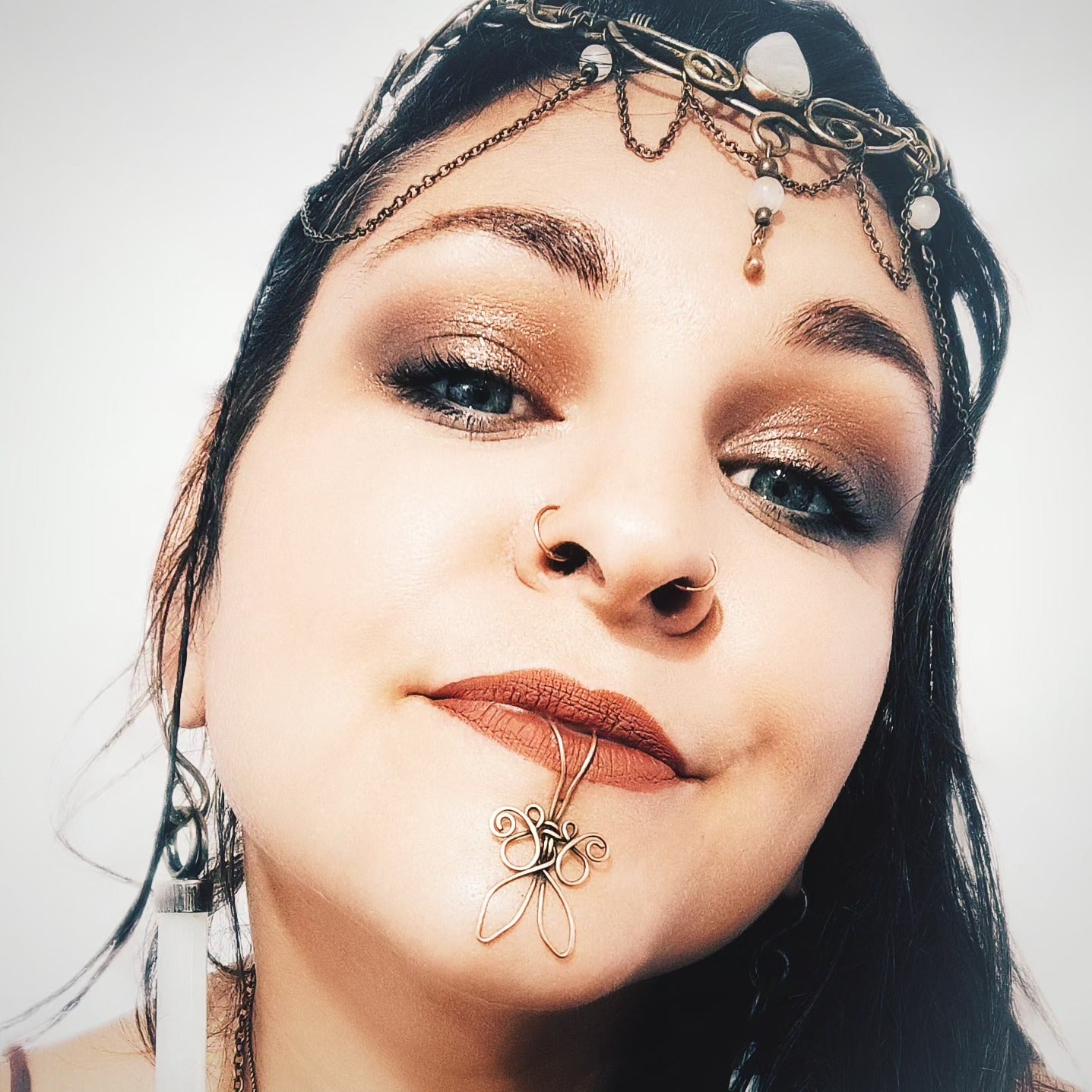 Les bijoux de lèvres sont des créations tissées en fil de laiton...
