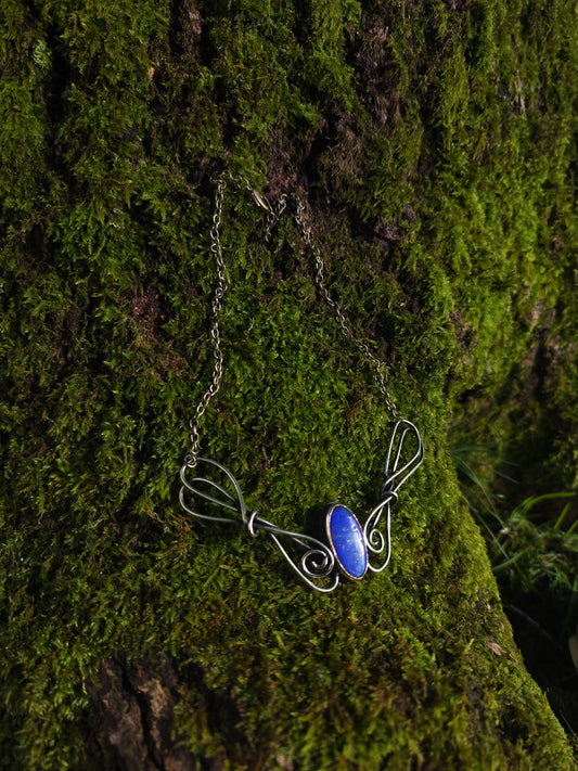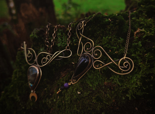 Série permanente de collier en laiton et en pierre. Le modèle FAIRY se reconnait dans le choix de ses formes entrelacées et très épurés sur de larges colliers.