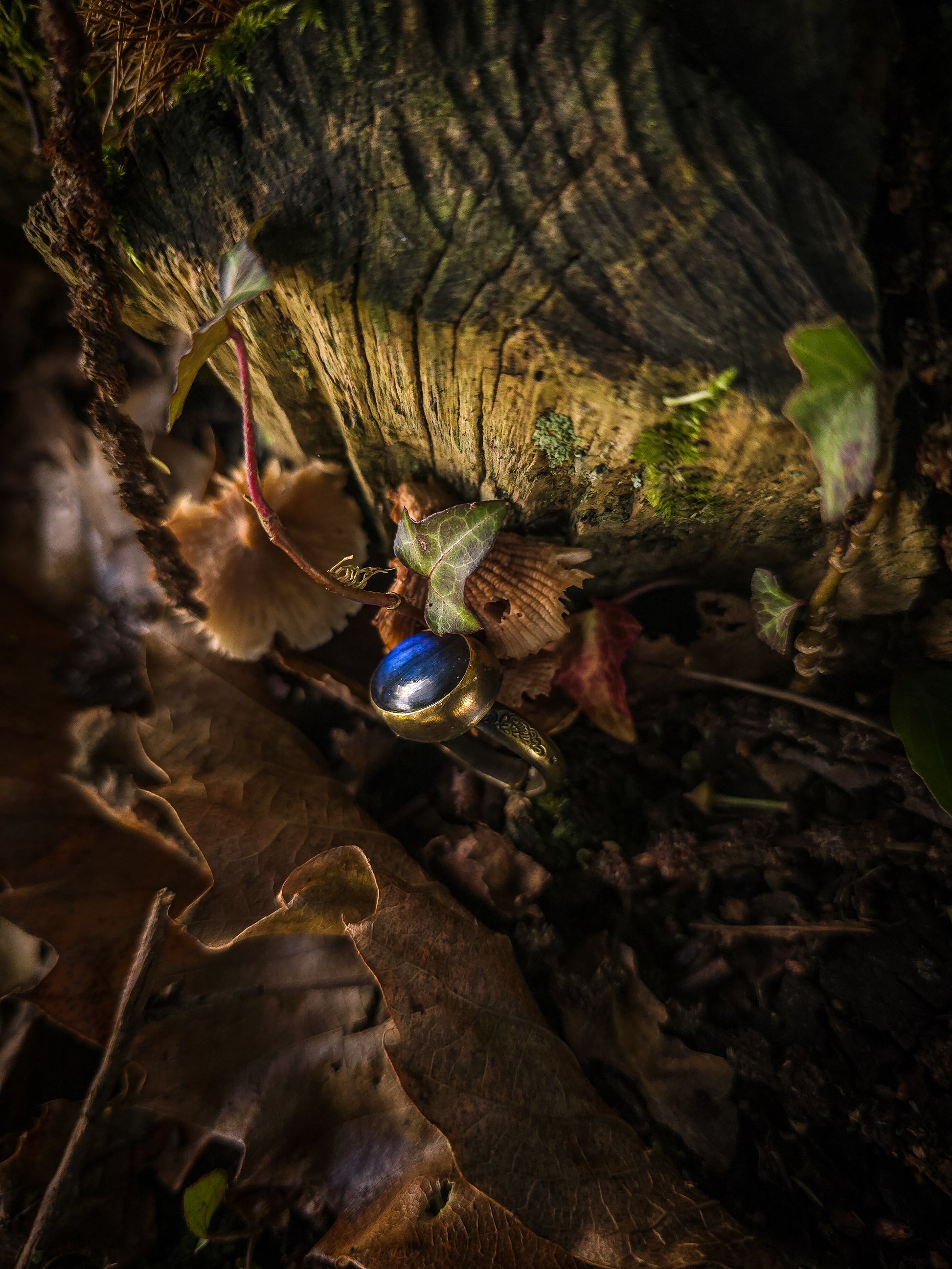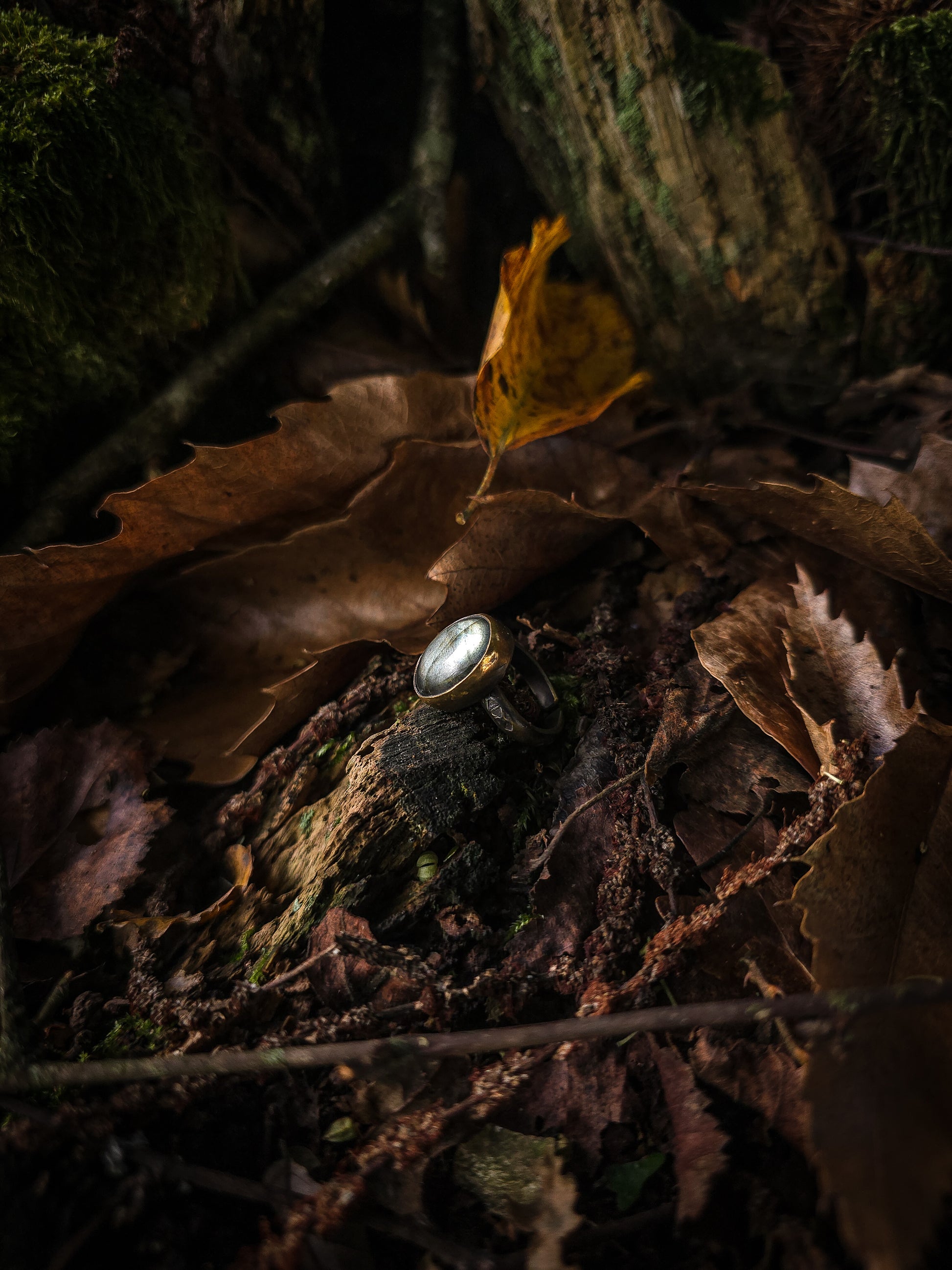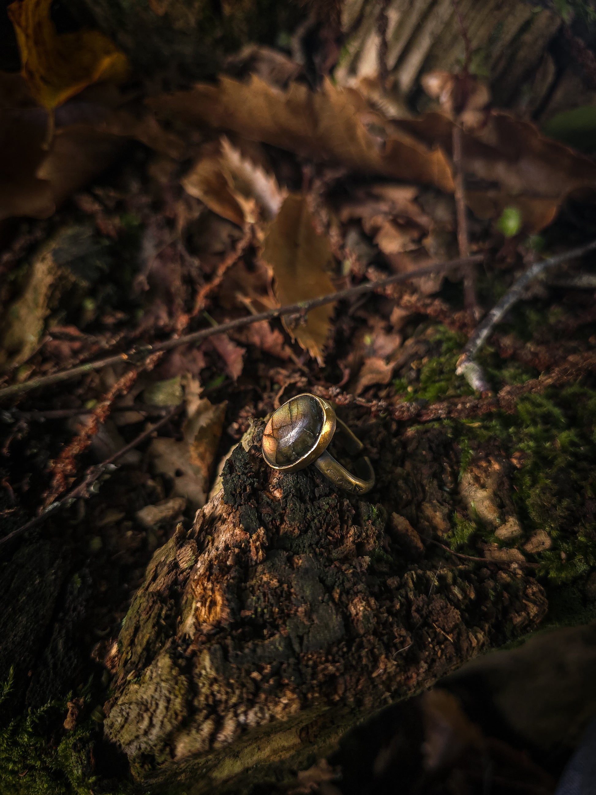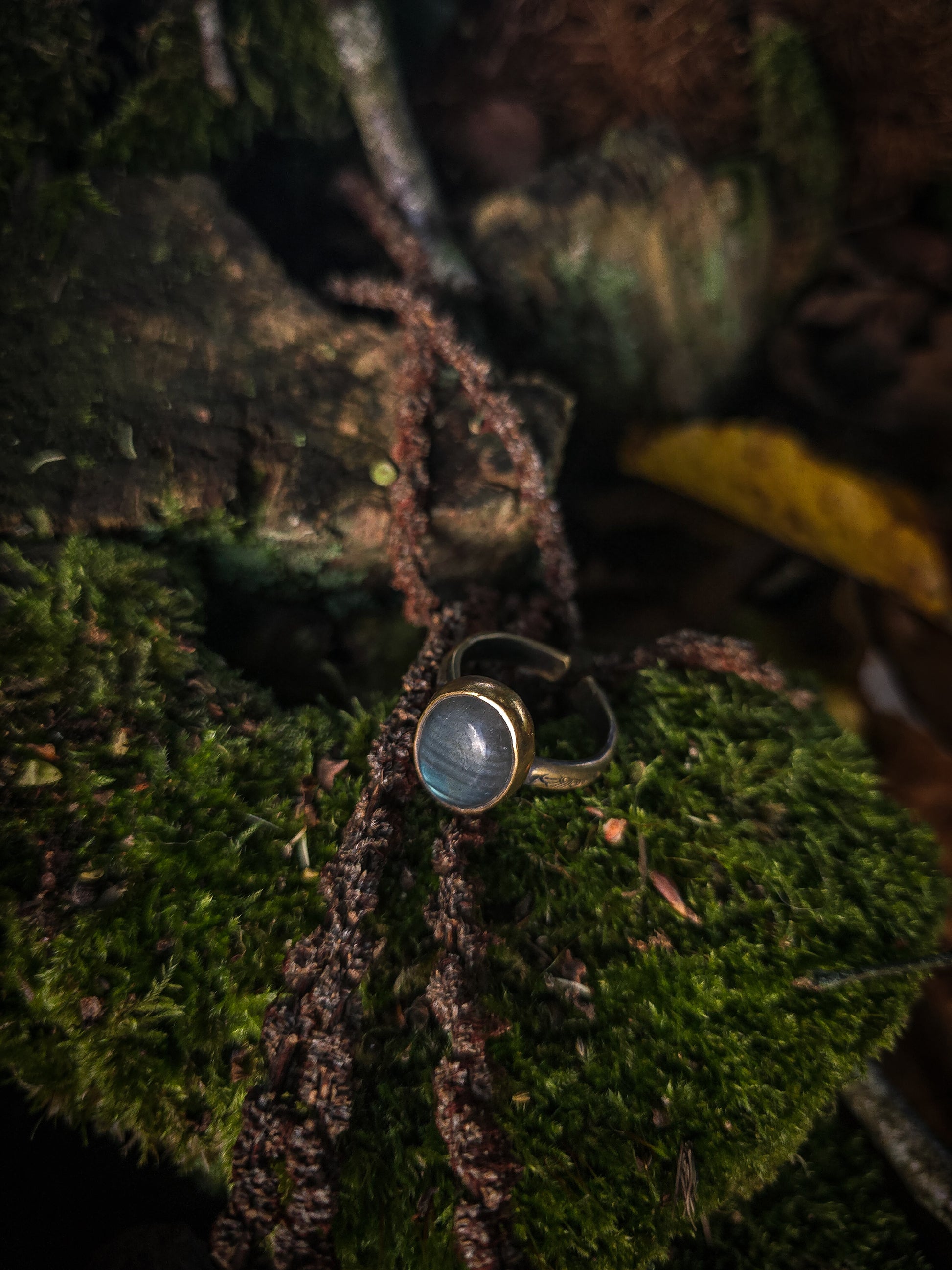 bagues en laiton texturé et Labradorite
