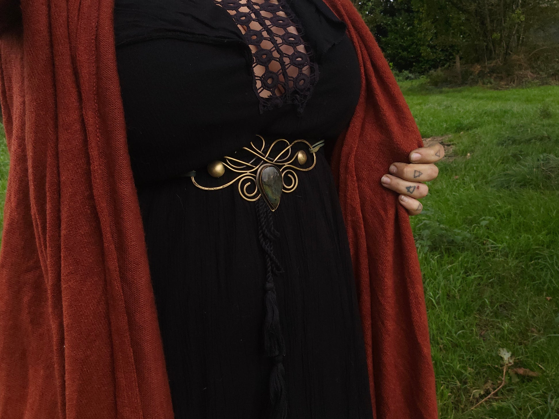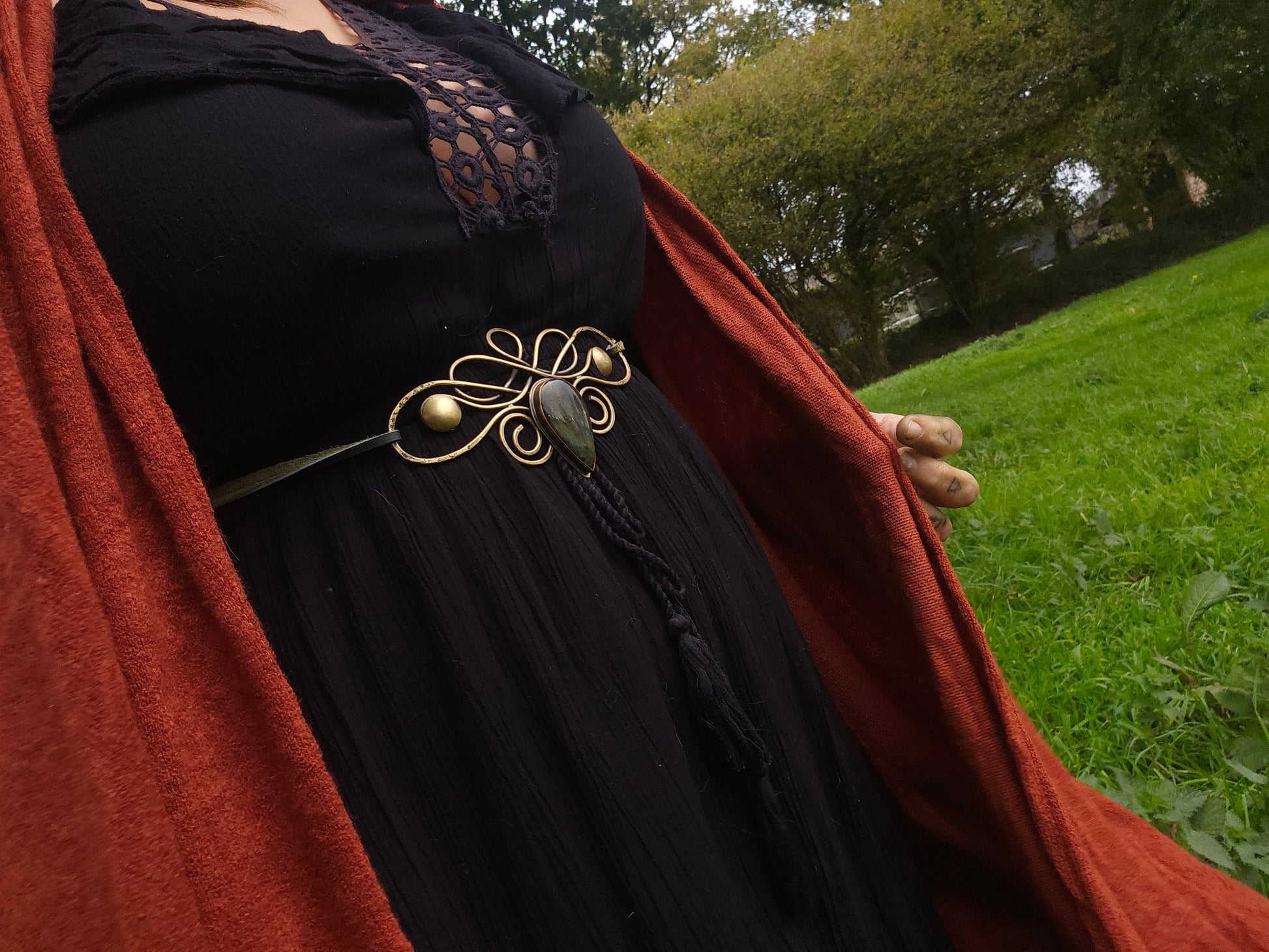 Ceinture de taille, en laiton patiné et pierre en labradorite
