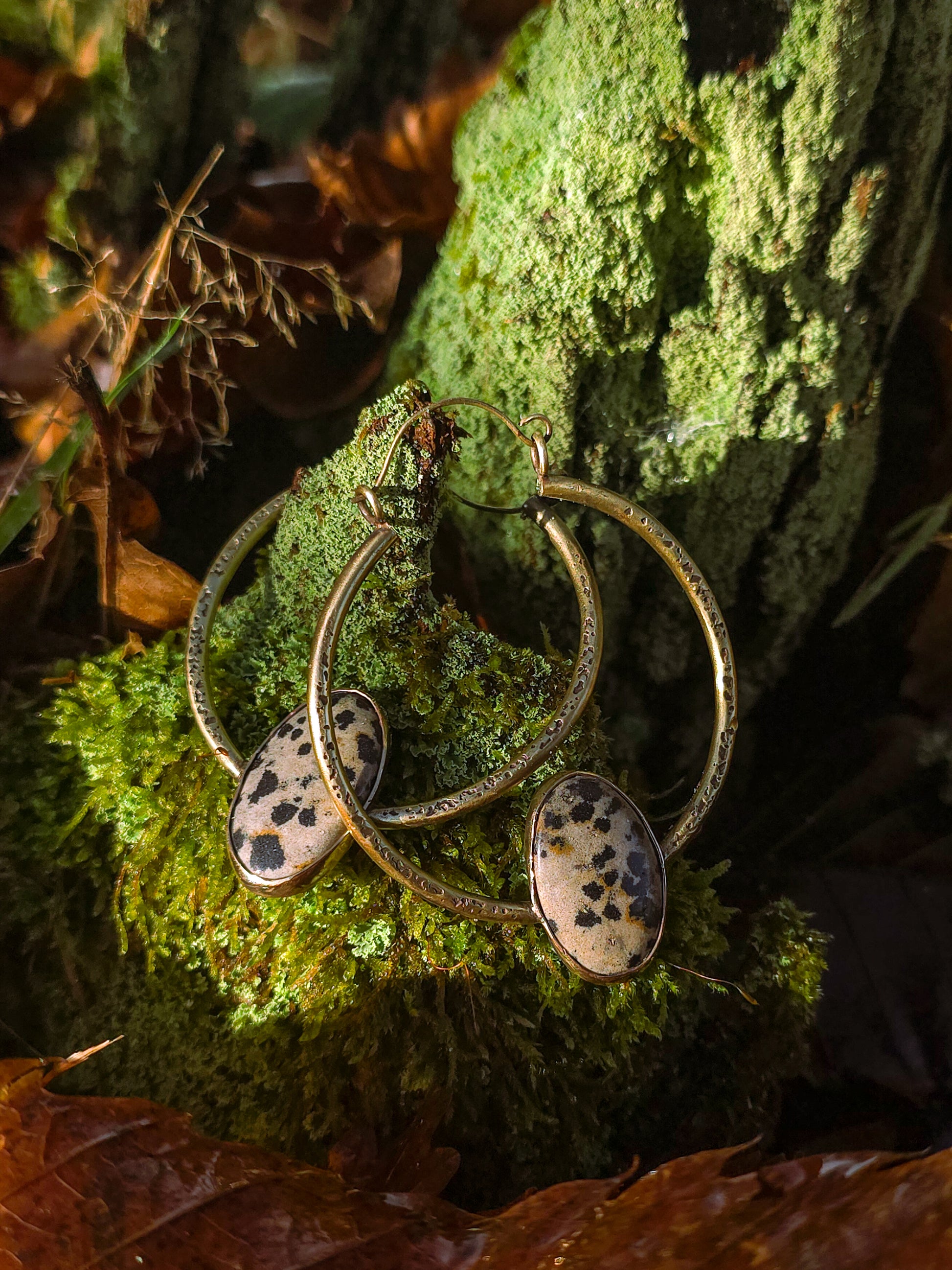 Créoles GORGONE en laiton martelé et jaspe léopard