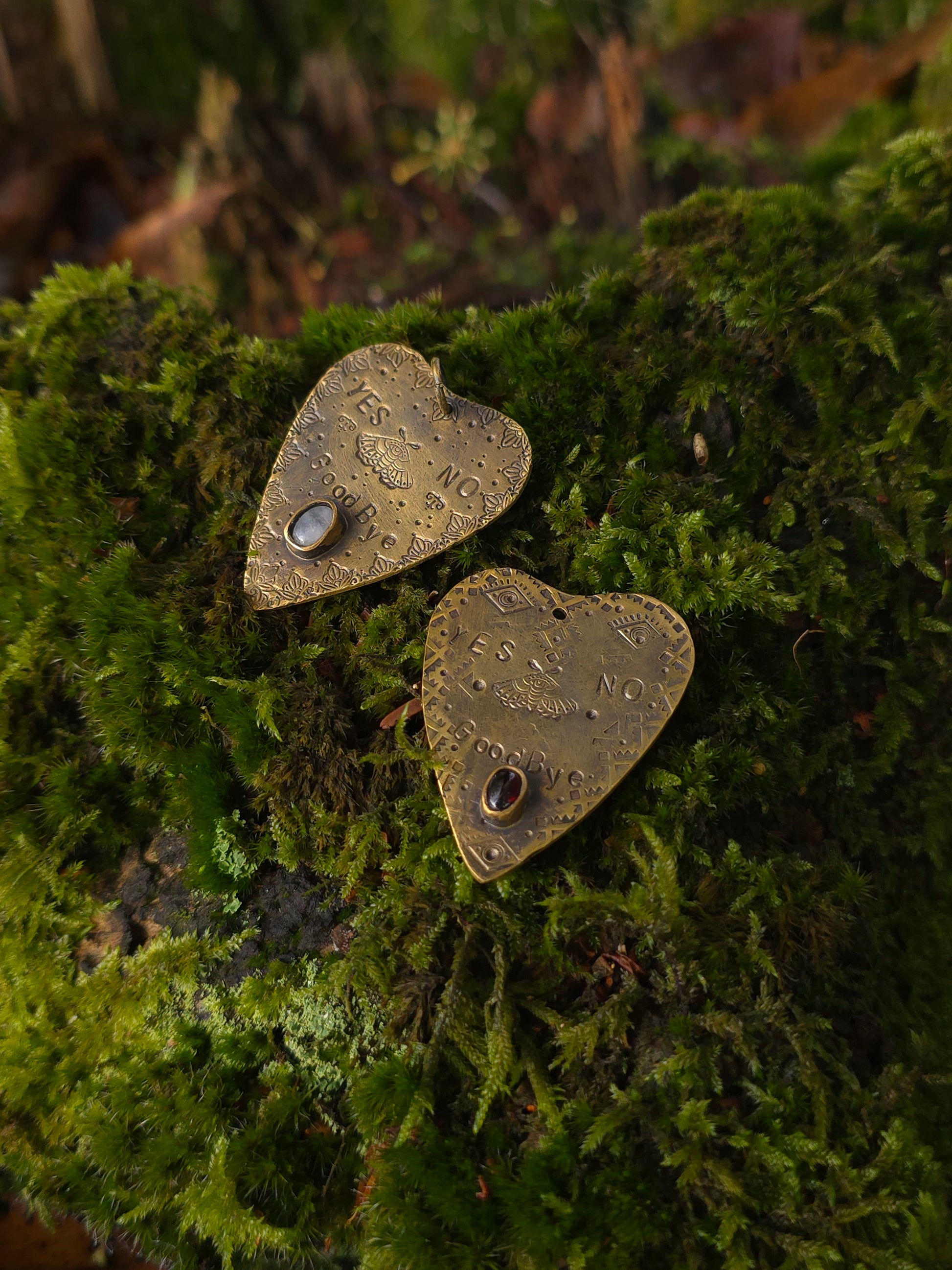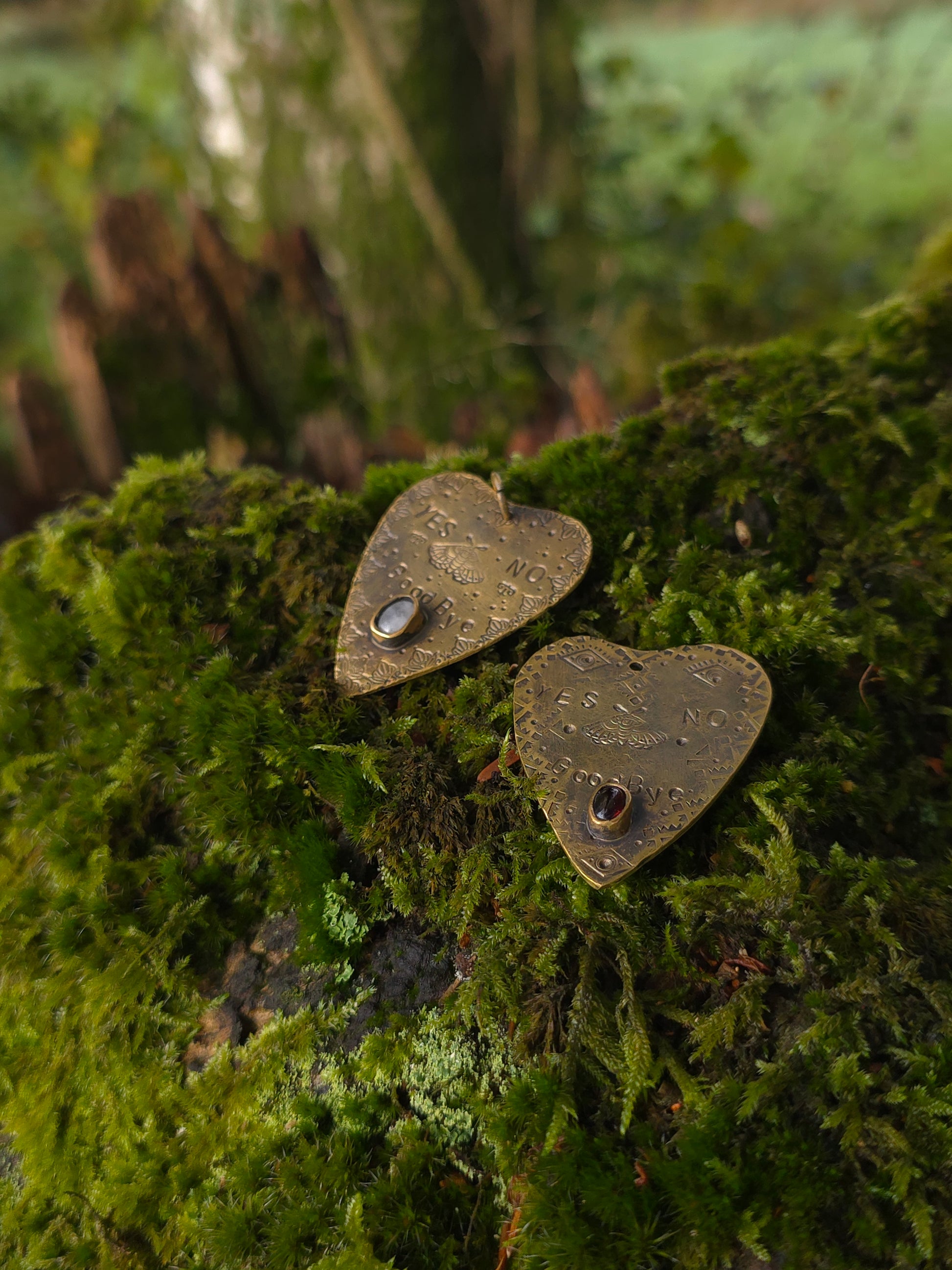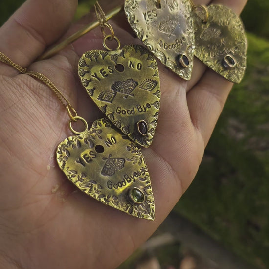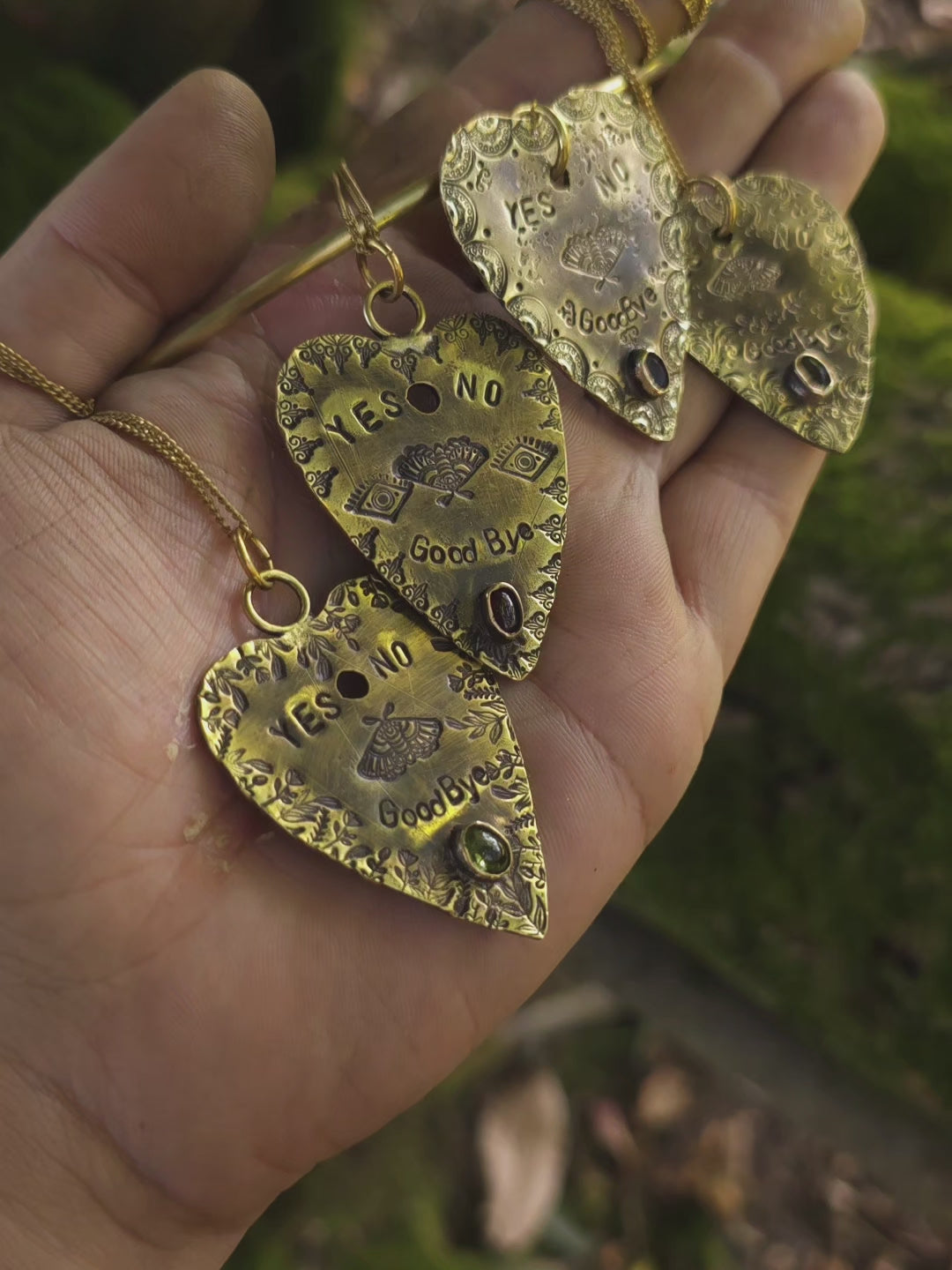 Pendentif en laiton et en pierre, fait main, modele unique, vendu sur chaîne en acier inoxydable doré