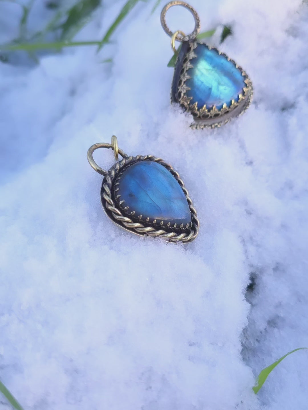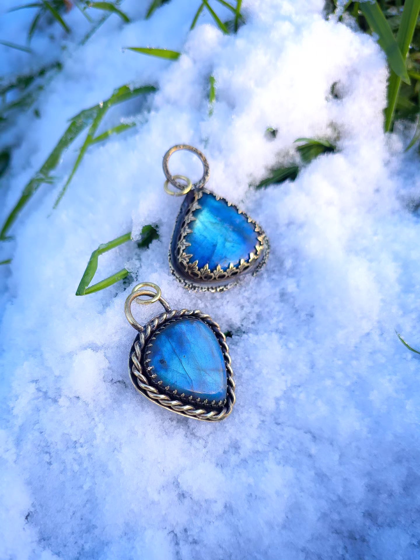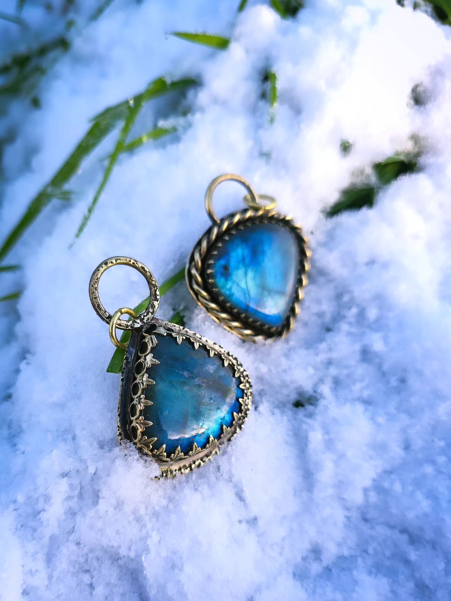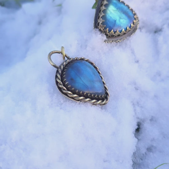 Pendentif vegvisir en laiton et labradorite, symbol vegvisir ajoureau dos.
